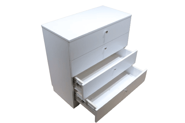 Белый комод из ЛДСП с 4 ящиками и металлическими ручками-кнопками, 8681SM MR