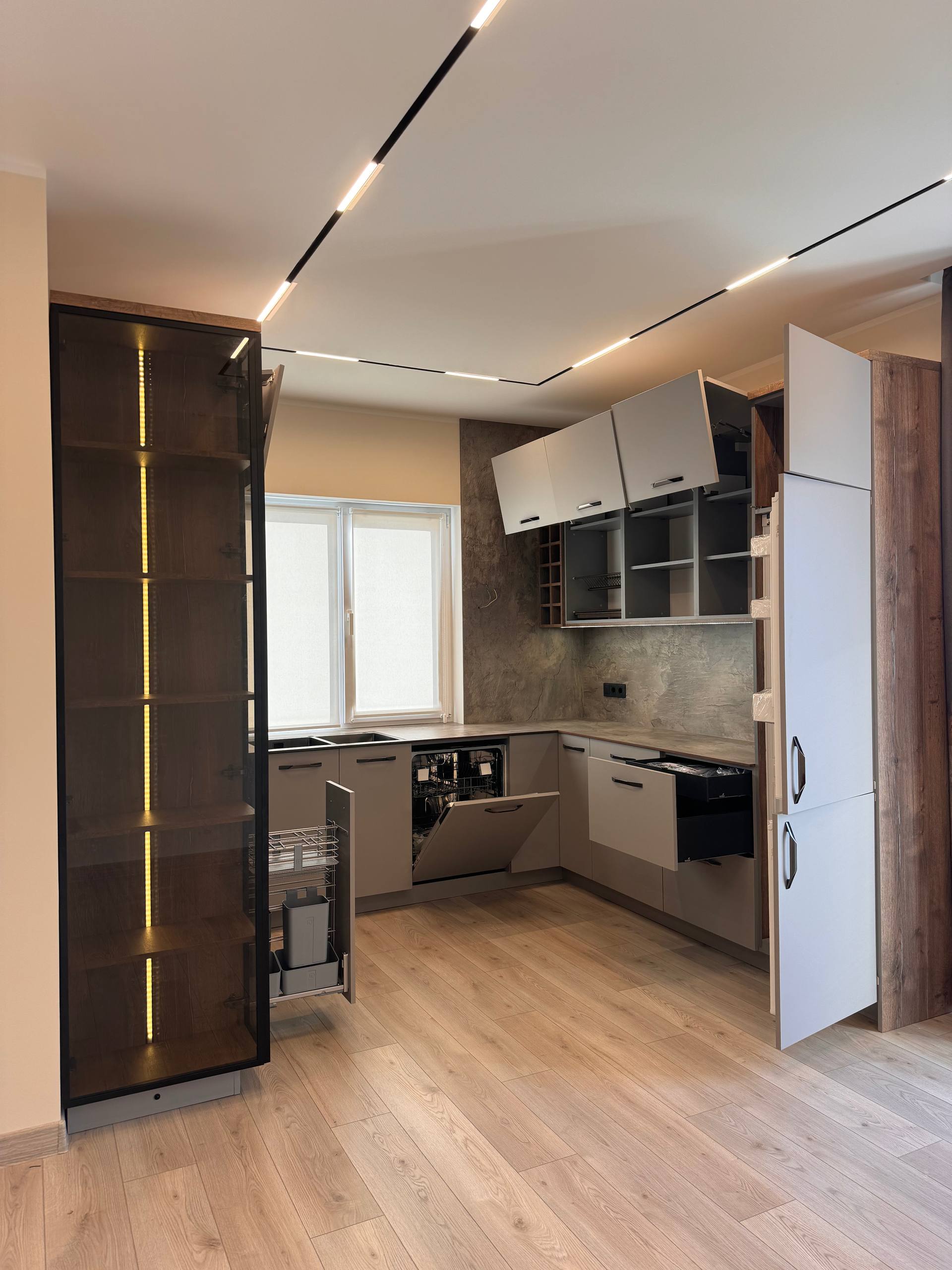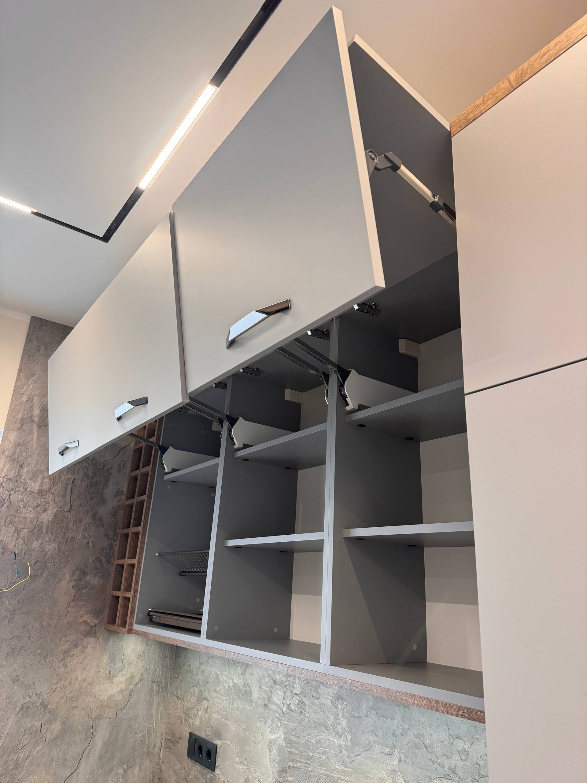 Элегантный дизайн, умные решения для хранения и прочные материалы – всё, что нужно для практичной и изысканной кухни, идеально подходящей для вашего дома.